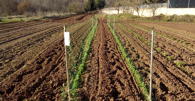 Este año 2020, hemos empezado a testar las micorrizas en guisante, haba y puerros. Para ello hemos inoculado plantas de guisante y habas en nuestra finca experimental de “los majuelos”